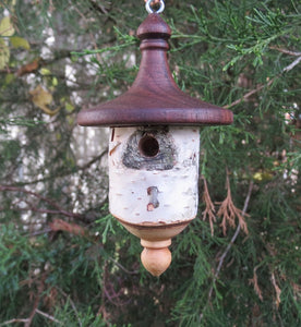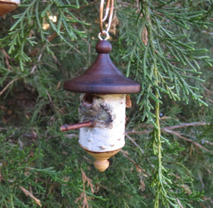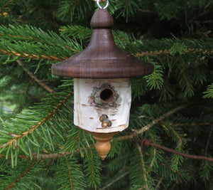 Birdhouse Ornament, Medium Large Black Walnut and White Birch Turned Ornament