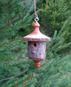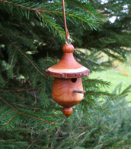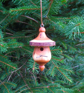 Small Turned Birdhouse Ornament, Bark Birdhouse, Christmas Ornament
