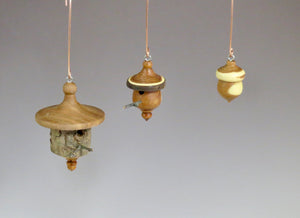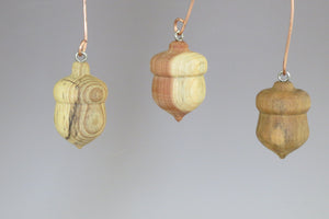 Three Acorn Ornaments, Turned Wood Christmas Ornaments, Set of Three Acorn Ornaments